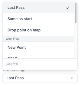 The "Last Pass" option will be selected by default when creating a new mission, unless an existing default end point has already been configured for the field. Learn more about default end points