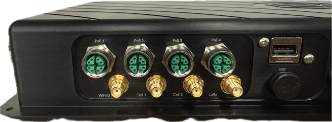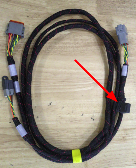 Step 8: Connect the cable to the vPFM. Route the cable down the ROPS structure or back of the cab with the rest of the cables. Install the required adapter on the end of the cable. Screw the adaptor attached to the cable end into the port labeled “Wifi” on the bottom of the vPFM.