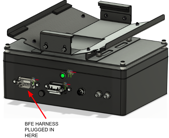 Step 1: Power off the system with the battery disconnect (Click here for more details). Locate the BFE enclosure on the rear of the vehicle. It will be located on the roof for cab tractors or on top of the ROPS for open station tractors. Remove the 4 screws holding the lid on.