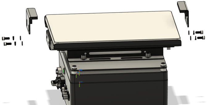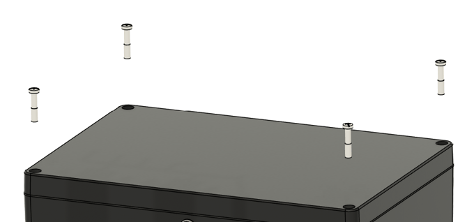 Step 3: Place the spacers over the holes where lid screws were removed from. Set the mount over the spacers and secure down using the M6 bolts and washers. DO NOT over tighten the M6 bolts, torque to 17.4 in-lbs.